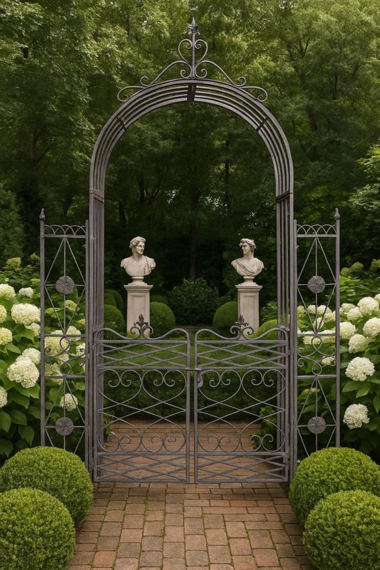 Tuinpoort ToscanaTuinpoort rozenboog Toscana in landhuisstijl, is een charmante stevige metalen toegangspoort voor uw romantische tuin en een mooie klimplant geleider.