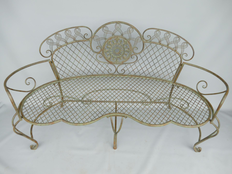 Nostalgisch halfrond tuinbankje is in 3 kleuren te bestellen en een mooi bankje voor in een ronde nis tegen uw huis aan of ander plekje in de tuin.