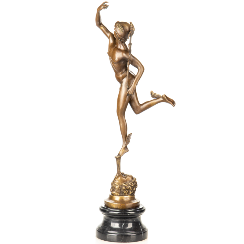 Bronzen Mercurius Hermes beeld 59 cm is een origineel brons relatiecadeau voor een effecten of beurshandelaar voor kantoor op het werk of thuis.