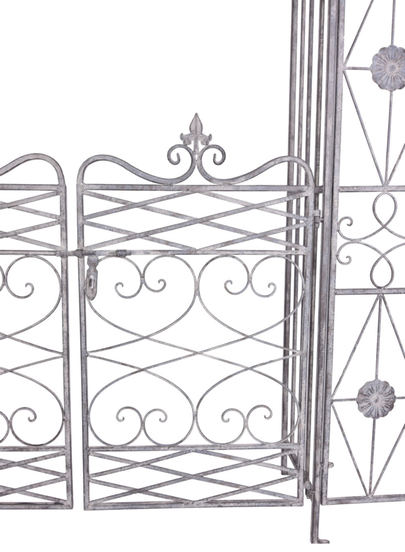 De “TOSCANA” is niet alleen een elegante blikvanger, maar ook een praktische tuinpoort. De boog is voorzien van twee sierlijke deuren die eenvoudig geopend kunnen worden. De zijrekken bieden ideale ondersteuning voor klimplanten zoals rozen, clematis of klimop, waardoor u de boog prachtig kunt laten begroeien en een groene, romantische sfeer creëert.