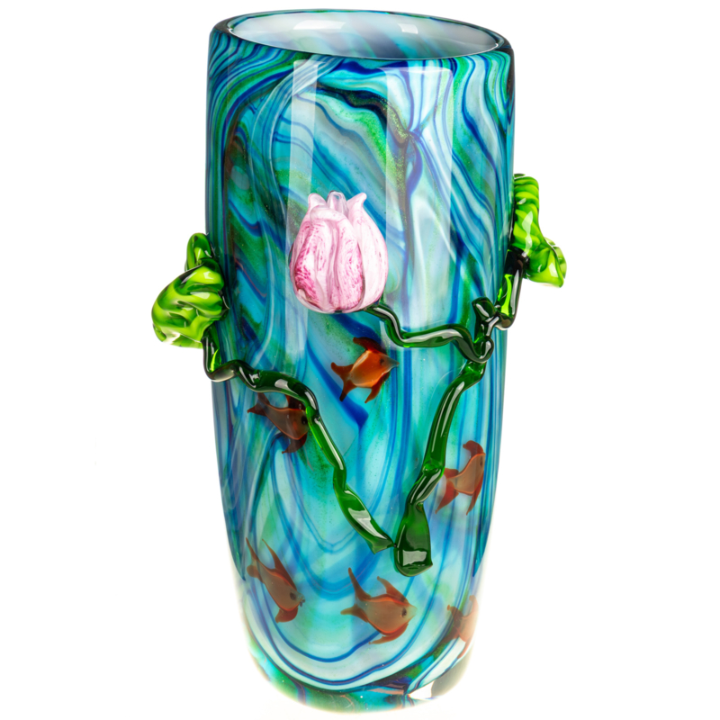 Murano-stijl vaas met vissen en bloemen