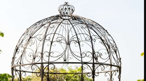 Prieel Lovely bruin smeedijzer is een liefdevolle prieel om in uw tuin te plaatsen of als trouwprieel bij trouwerijenbuiten in restauranttuinen.